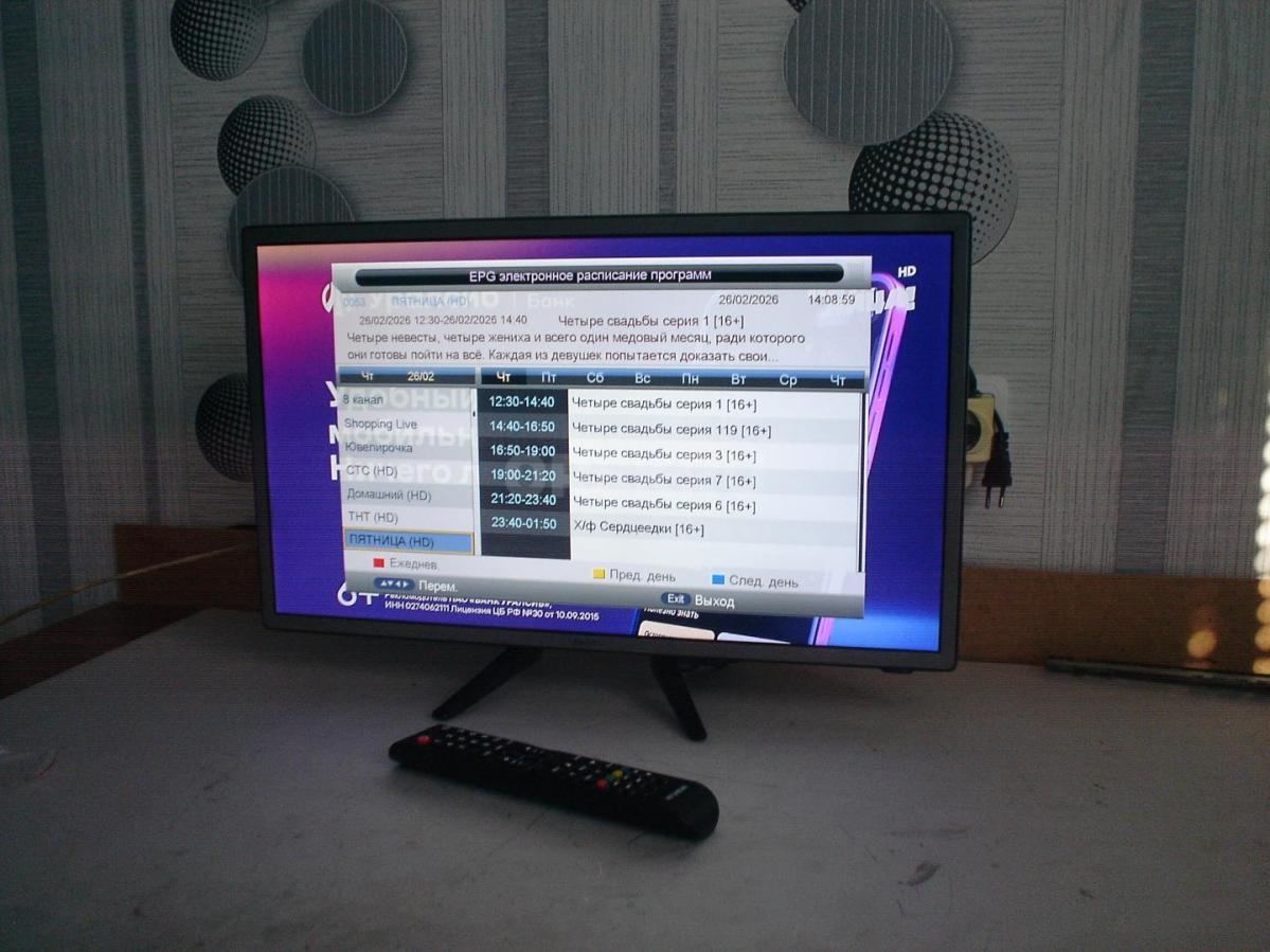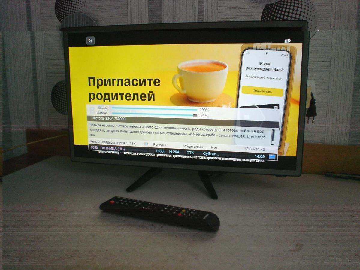 Doffler 24CH14-T2 диагональ 24дюйма (61см.) показывает 240 кабельных цифровых, 60 аналоговых и 20 каналов с комнатной антены без приставки.