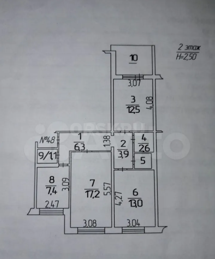 3-к квартира, 2/5 эт., 65м2