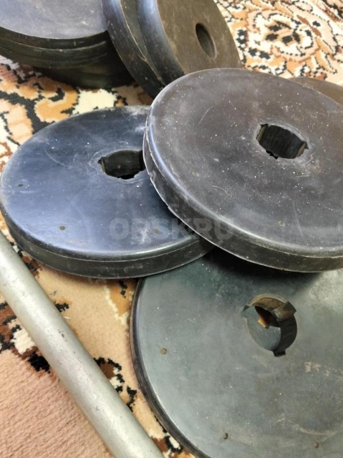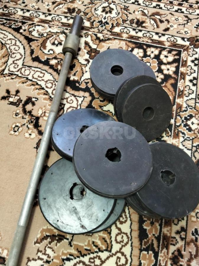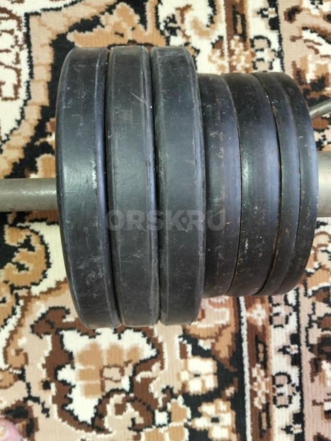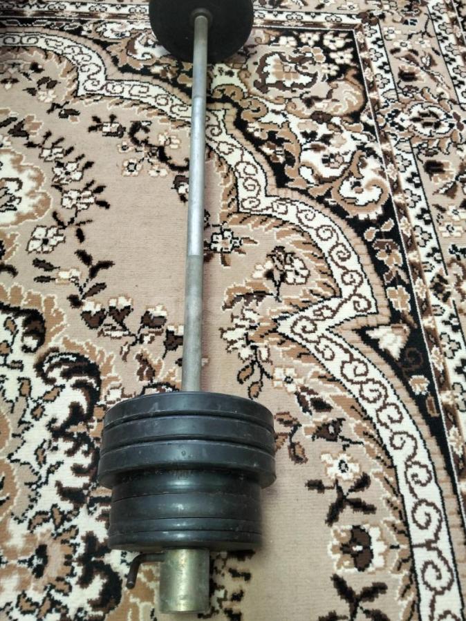 Штанга вес 70 кг.. Часть блинов прорезинена. Цена 3000 рублей.