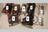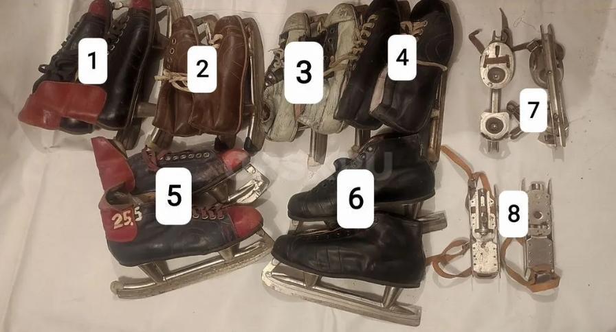 Коньки хоккейные,разного размера. Есть потёртости на пластиковой поверхности, но это не влияет на скольжение.