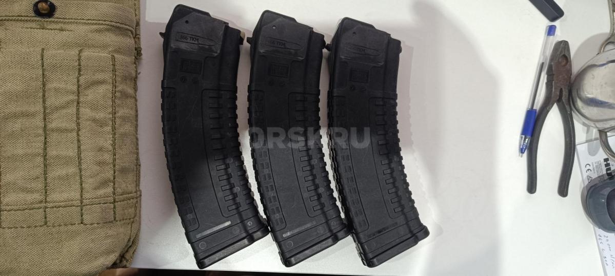 Три магазина для сайги 366ткм/7.62*39 Pufgan, 30 местные установлены ограничители на 10, можно легко убрать. Плюс армейский подсумок на 4 магазина. Цена за всё.