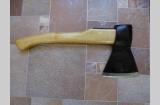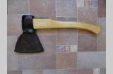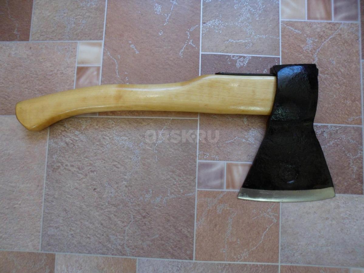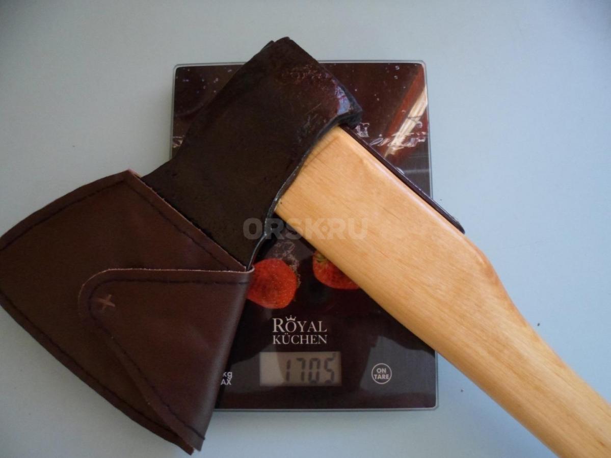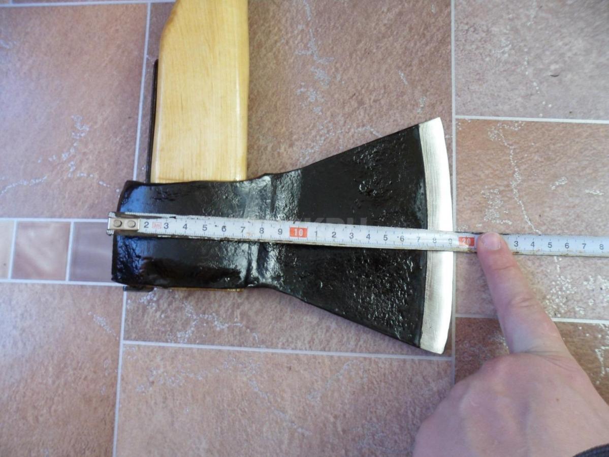 Топор из СССР с кобурой для безопасной транспортировки. Для дополнительной безопасности на обухе так же была установлена скоба-антисрыв. Полная длина топора - 46 см. Высота - 19 см. Длина лезвия - почти 14,5 см. Масса топора - 1700 гр. Твердометра у меня нет, но за сталь могу сказать что топор будучи снятым с топорища и подвешанным на проволоку звенел как колокол (на топорище конечно же уже не такой звонкий - дерево глушит, но всё же звенит довольно красиво), да и точилась она я бы не сказал что легко, т.е. твердость в ней чувствуется. В клеймах не разбираюсь, оно на последнем фото. Произведен топор примерно в 60-х, начале 70-х годов прошлого века.