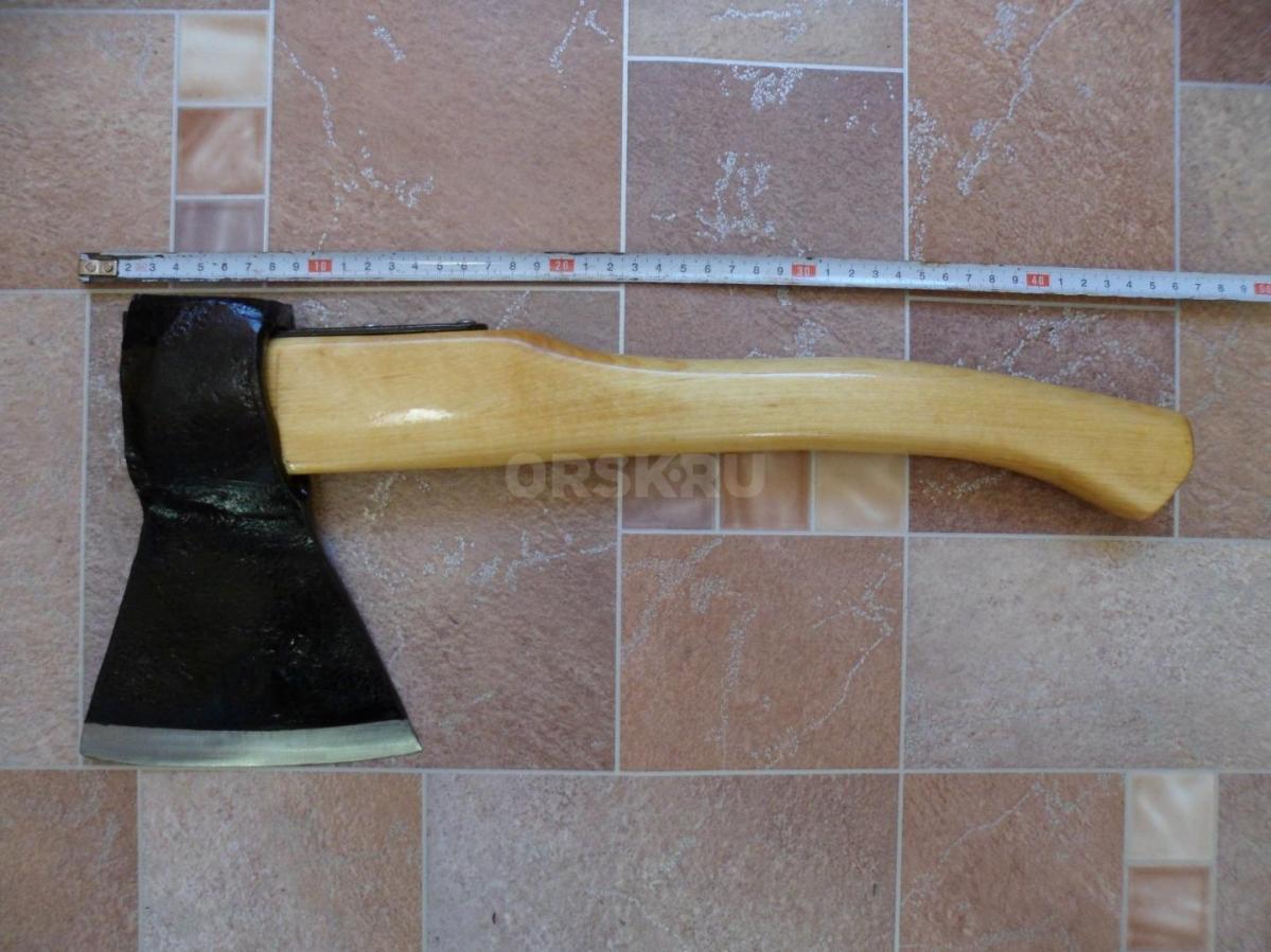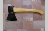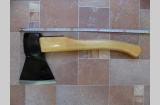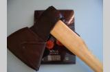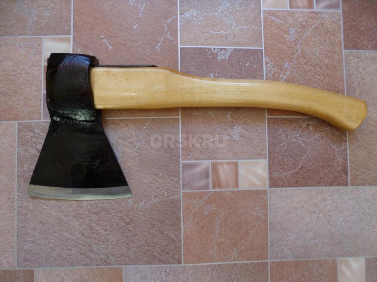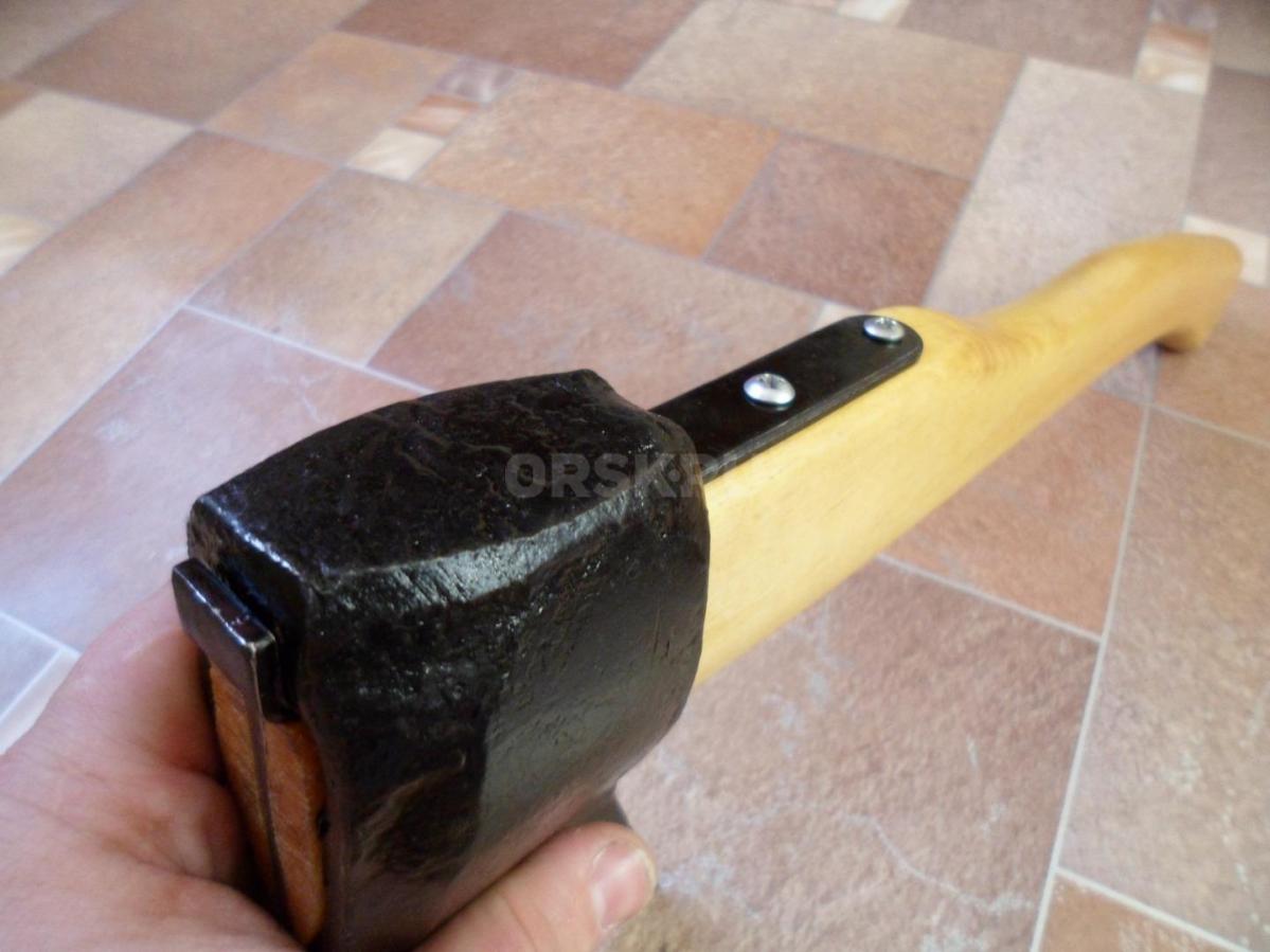 Топор из СССР с кобурой для безопасной транспортировки. Для дополнительной безопасности на обухе так же была установлена скоба-антисрыв. Полная длина топора - 46 см. Высота - 19 см. Длина лезвия - почти 14,5 см. Масса топора - 1700 гр. Твердометра у меня нет, но за сталь могу сказать что топор будучи снятым с топорища и подвешанным на проволоку звенел как колокол (на топорище конечно же уже не такой звонкий - дерево глушит, но всё же звенит довольно красиво), да и точилась она я бы не сказал что легко, т.е. твердость в ней чувствуется. В клеймах не разбираюсь, оно на последнем фото. Произведен топор примерно в 60-х, начале 70-х годов прошлого века.