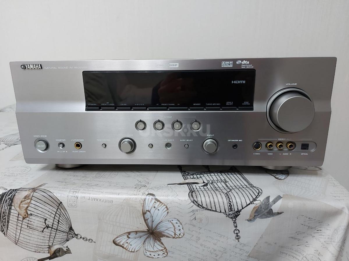 В комплекте инструкция на русском, пульт, AM и FM антенны, микрофон для автонастройки YPAO, родная коробка.