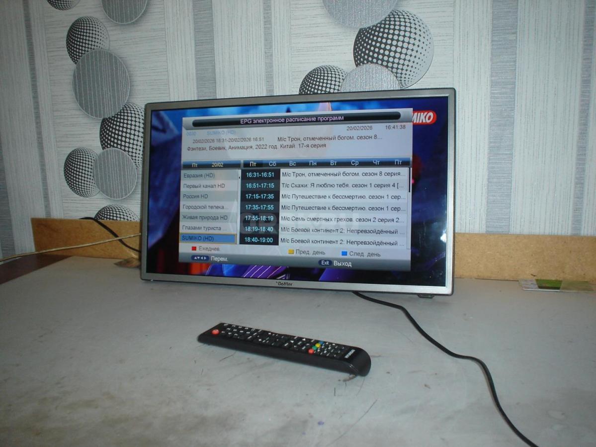 Doffler 24CH14-T2 показывает 240 кабельных цифровых, 60 аналоговых и 20 каналов с комнатной антены без приставки.