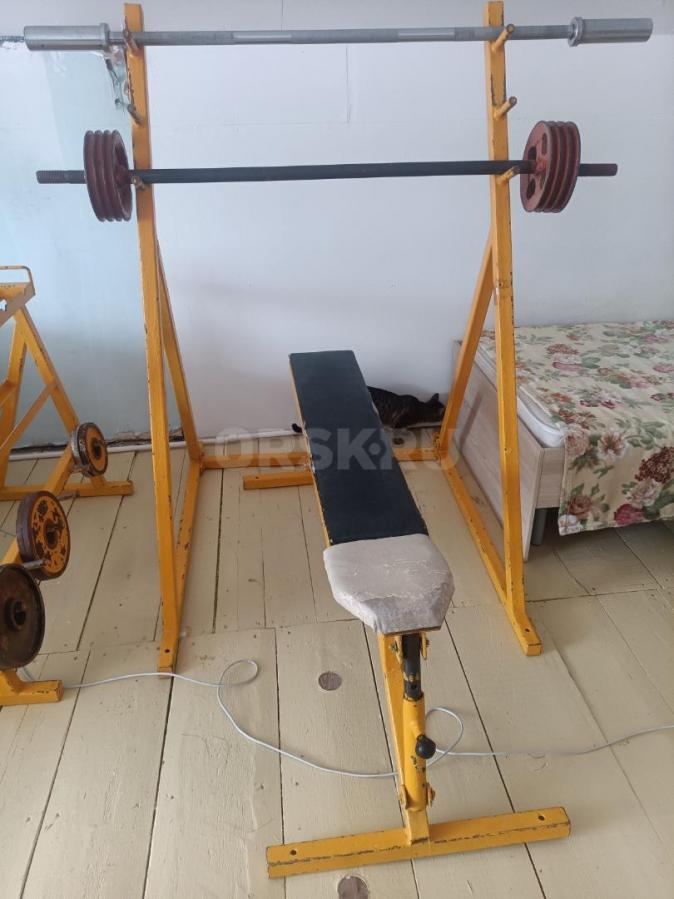 Продам тренажёр для жима лёжа. Станок, скамья регулируемая и подставка под блины-гантели, плюс все что на фото. За все 8000 рублей